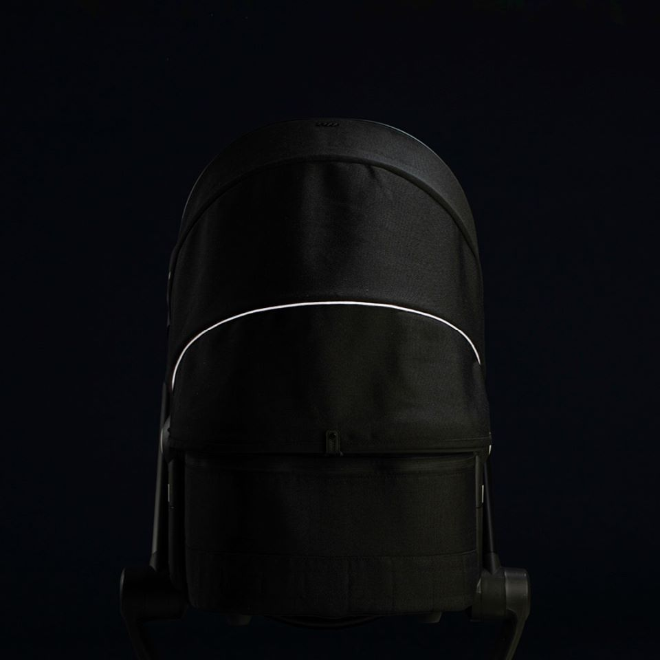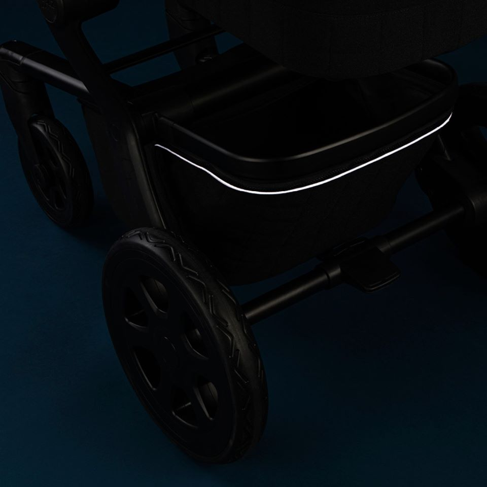 Dodatkowe odblaskowe elementy na budce i koszyku zapewniają bezpieczeństwo podczas poruszania się gdy jest już ciemno.